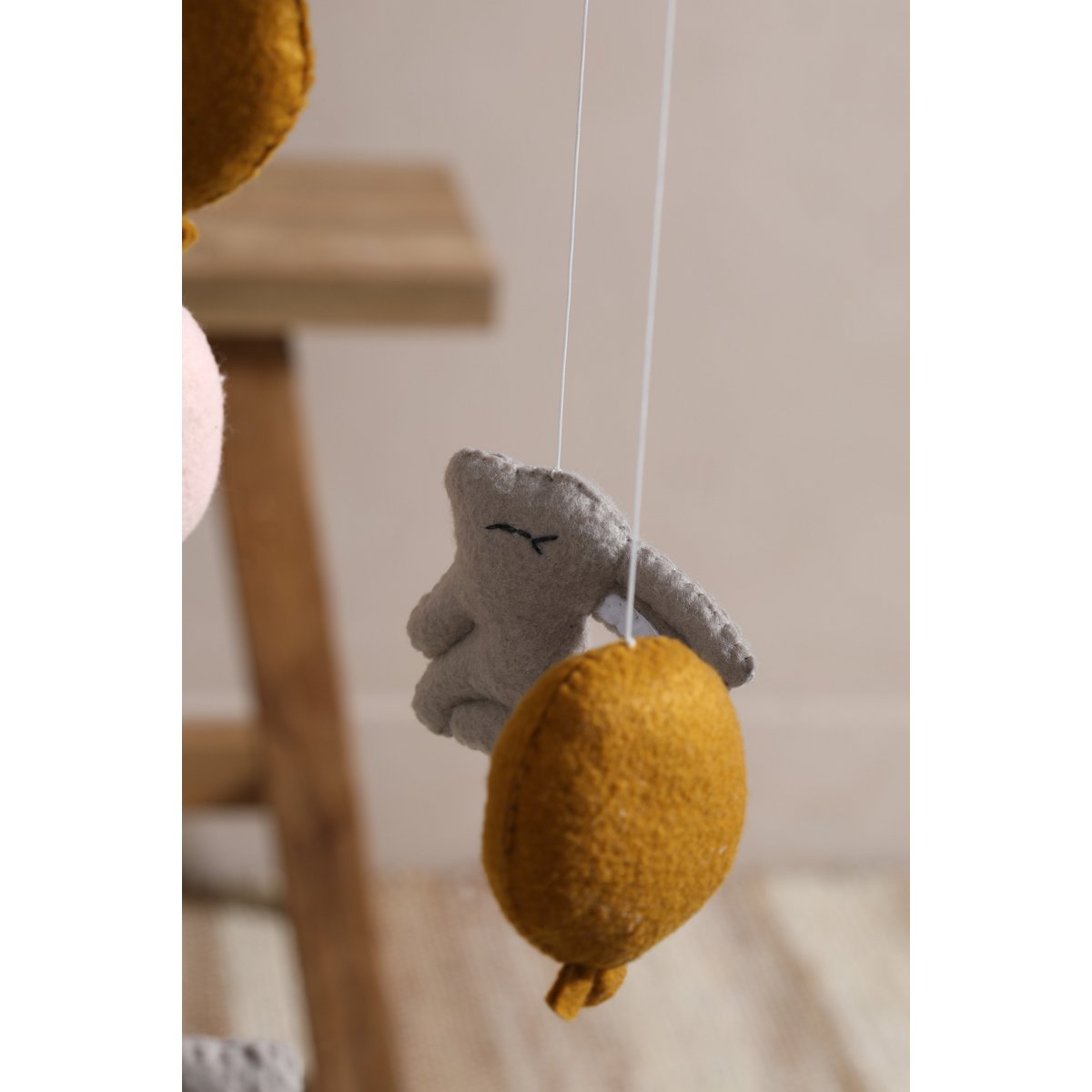RABBITS bringt zauberhafte Stimmung in jedes Kinderzimmer. Die handgefertigten Hasen und Luftballons aus weichem Filz und Holz schweben sanft über dem Bettchen oder Wickeltisch und schaffen eine beruhigende, magische Atmosphäre. Jedes Mobile ist einzigartig, liebevoll gefertigt und sorgt für ein verspieltes Highlight in Deinem Raum.